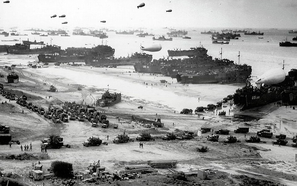 | Hàng trăm tàu và máy bay với đủ hình dạng và kích cỡ tập kết tại bãi biển Omaha ngày 6/6/1944. Hàng trăm ngàn binh sĩ quân đội khối Đồng minh đã thực hiện một cuộc đổ bộ táo bạo quy mô lớn nhất trong thời kỳ Thế Chiến II vào các bãi biển vùng Normandie để bắt đầu chiến dịch giải phóng Châu Âu khỏi Đức Quốc xã. Đây là cuộc tấn công từ biển vào đất liền lớn nhất trong lịch sử. 70 năm sau, bãi biển Omaha, gần Colleville-sur-Mer là “thiên đường của hòa bình” trong mắt người dân địa phương và du khách. |