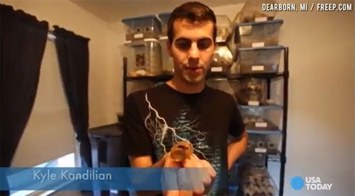 Sau khi mốt nuôi chuột lang, thằn lằn hay chó mèo đang trở thành sở thích phổ cập thì cậu sinh viên người Mỹ Kyle Kandilian lại có một sở thích nuôi thú cưng vô cùng kỳ quặc, đó là nuôi... gián làm cảnh trong nhà.