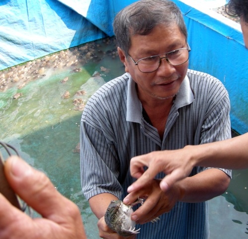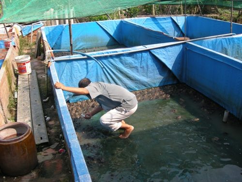 Để tận dụng nguồn phụ phẩm trong nuôi ếch, ông Điền nuôi 12.000 con cá tra trong ao nuôi (ngoài vèo nuôi ếch). Bình quân sau 5 tháng nuôi ếch, cá tra đạt trọng lượng khoảng 0,5 kg/con và dự kiến sau 4 lứa ếch thịt sẽ thu hoạch một đợt cá tra. Như vậy, hàng năm ông Điền cũng có nguồn thu nhập gần 100 triệu đồng từ nuôi ếch và nguồn thu đáng kể từ cá tra vì chỉ tốn tiền cá giống chứ không cần phải mua thức ăn cho cá.