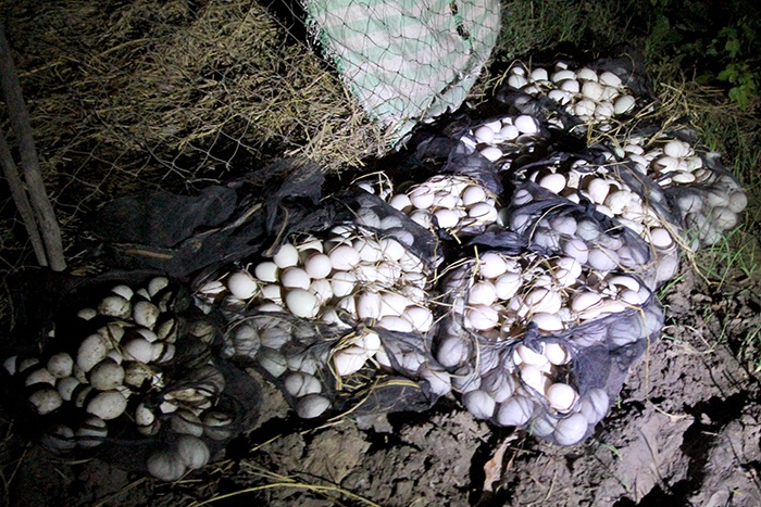 | Việc thu hoạch trứng được tiến hành từ sáng sớm. |