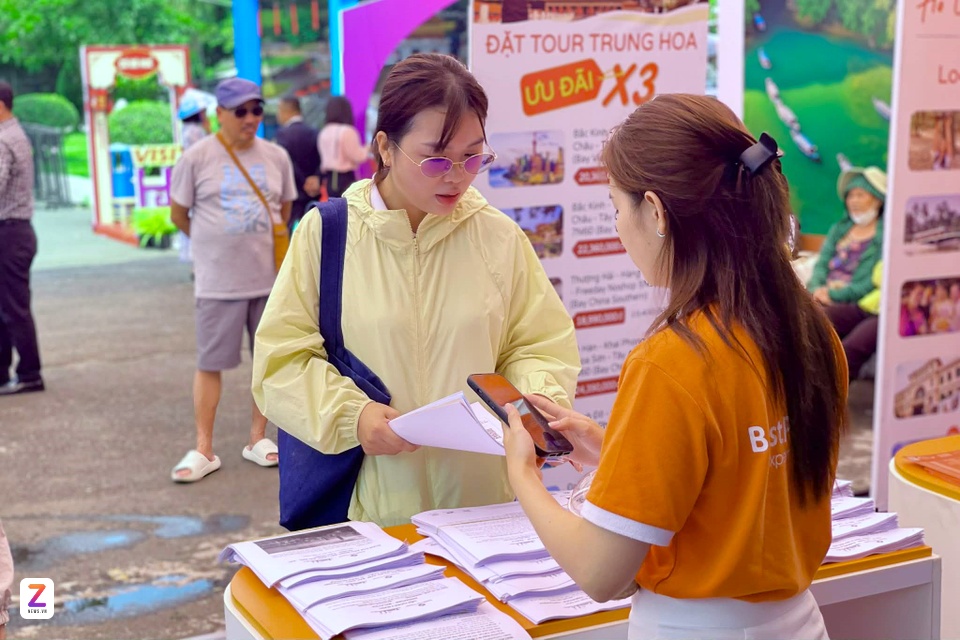 "Khách mua tour được tặng vật phẩm du lịch và hoàn tiền nếu không đậu visa. Theo tâm lý, ngày đầu họ sẽ đi tham khảo, hai ngày cuối sự kiện mới xuống tiền chốt tour", ông Tú nói.