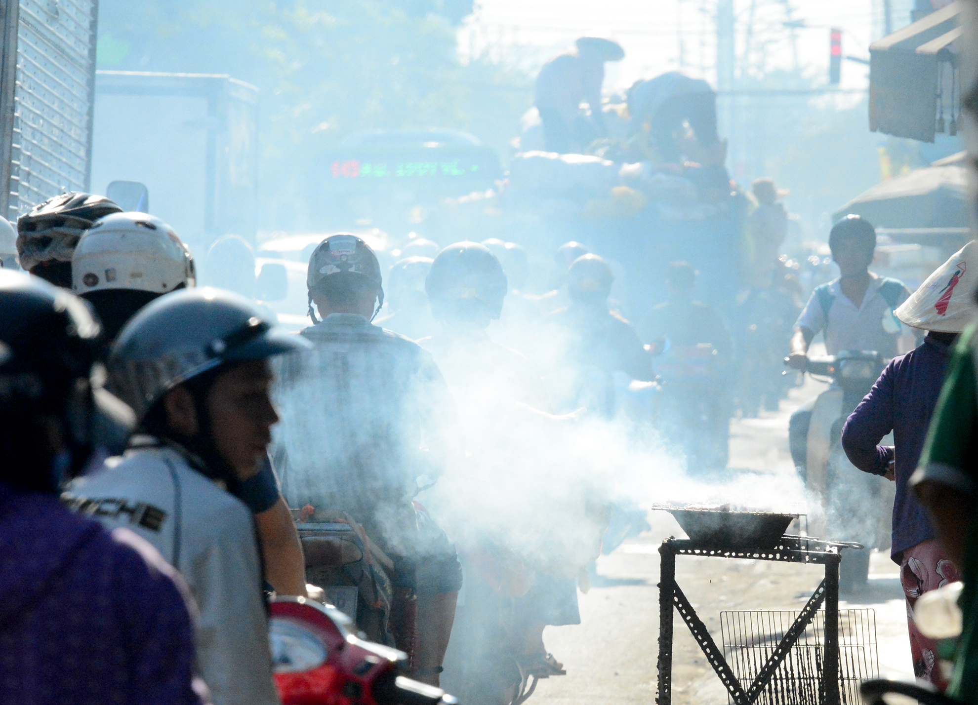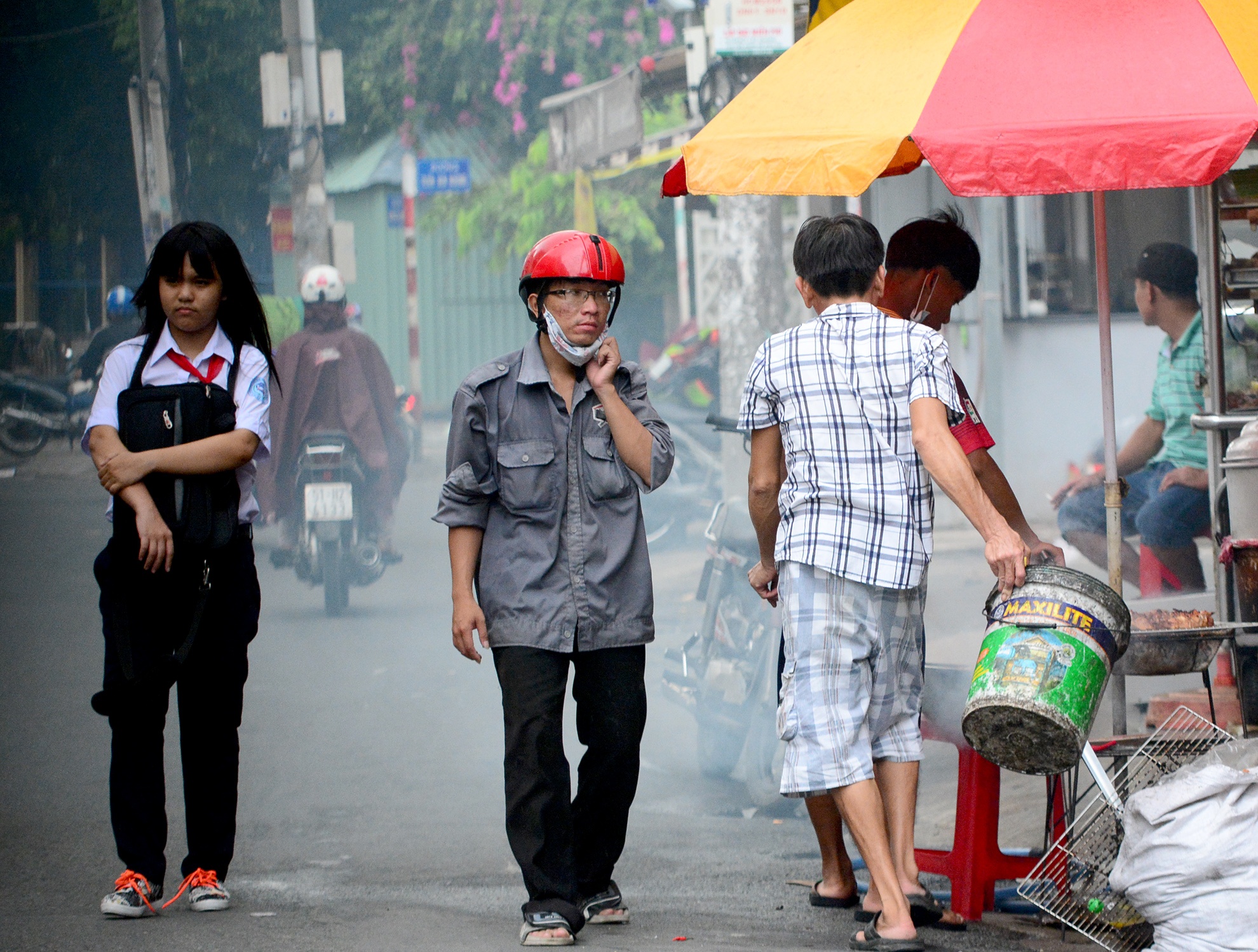 | Thời gian gần đây, người đi xe máy trên nhiều tuyến đường ở TP HCM dễ gặp phải những làn khói độc hại, cay xè phả vào mặt mũi từ các bếp nướng vỉa hè của nhà hàng, quán ăn. |