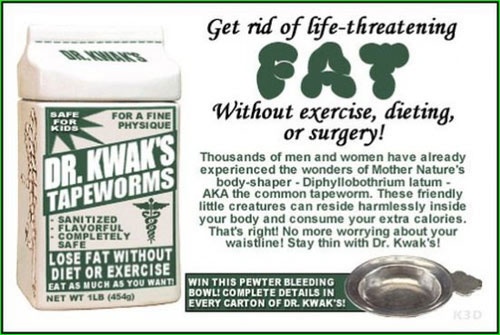 | Một quảng cáo thuốc giảm cân bằng giun sán. |