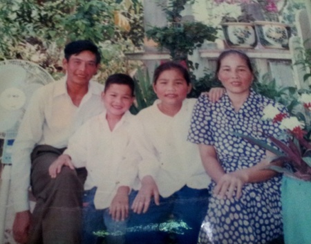 | Vợ chồng chị Ngũ và hai đứa con. |