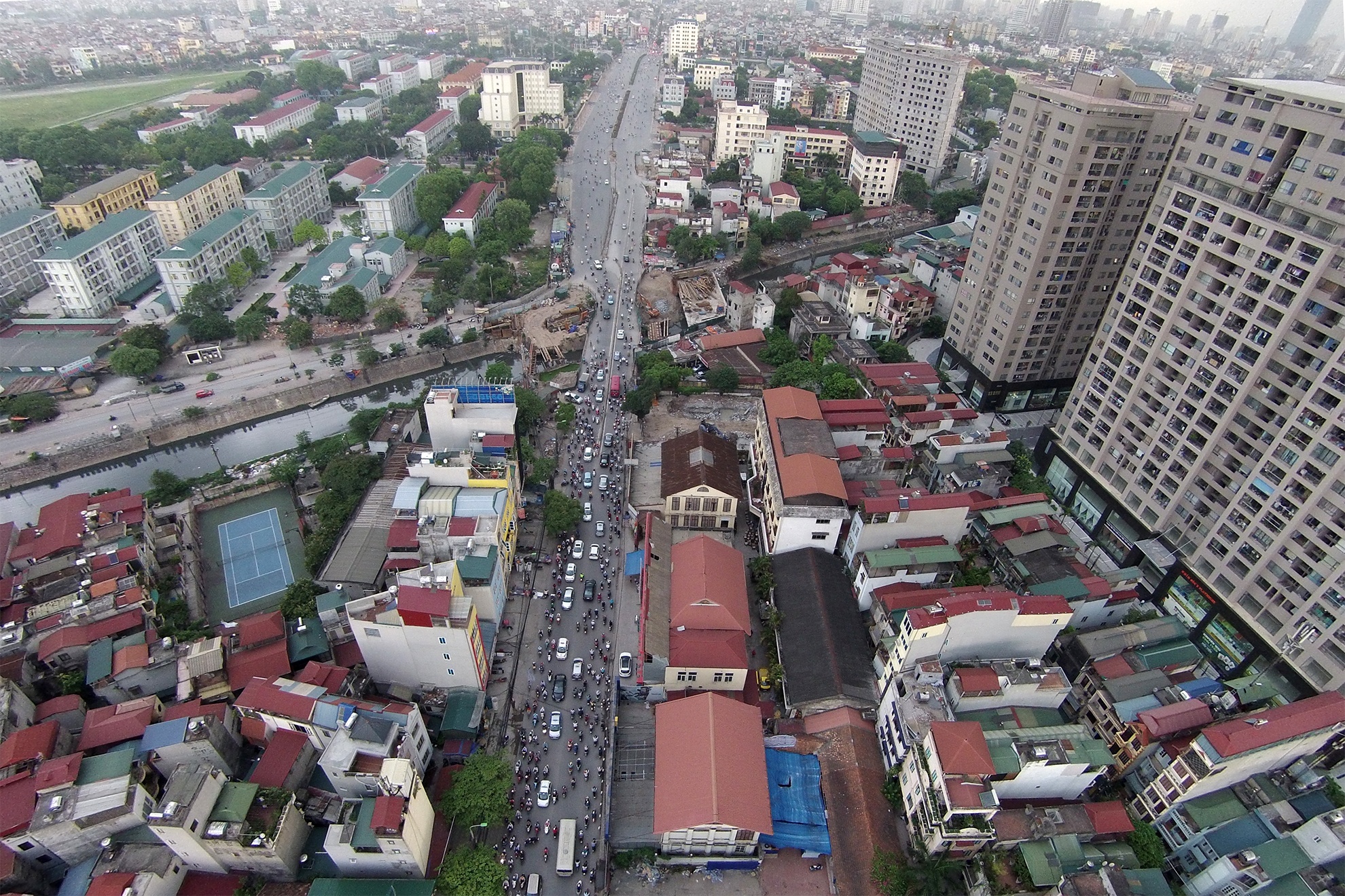 Khởi công cách đây gần 3 năm nhưng chưa giải phóng xong mặt bằng nên đường Trường Chinh (Hà Nội) dài gần 2 km có hình dáng chiếc chai khiến tuyến đường này thường xuyên ùn tắc.