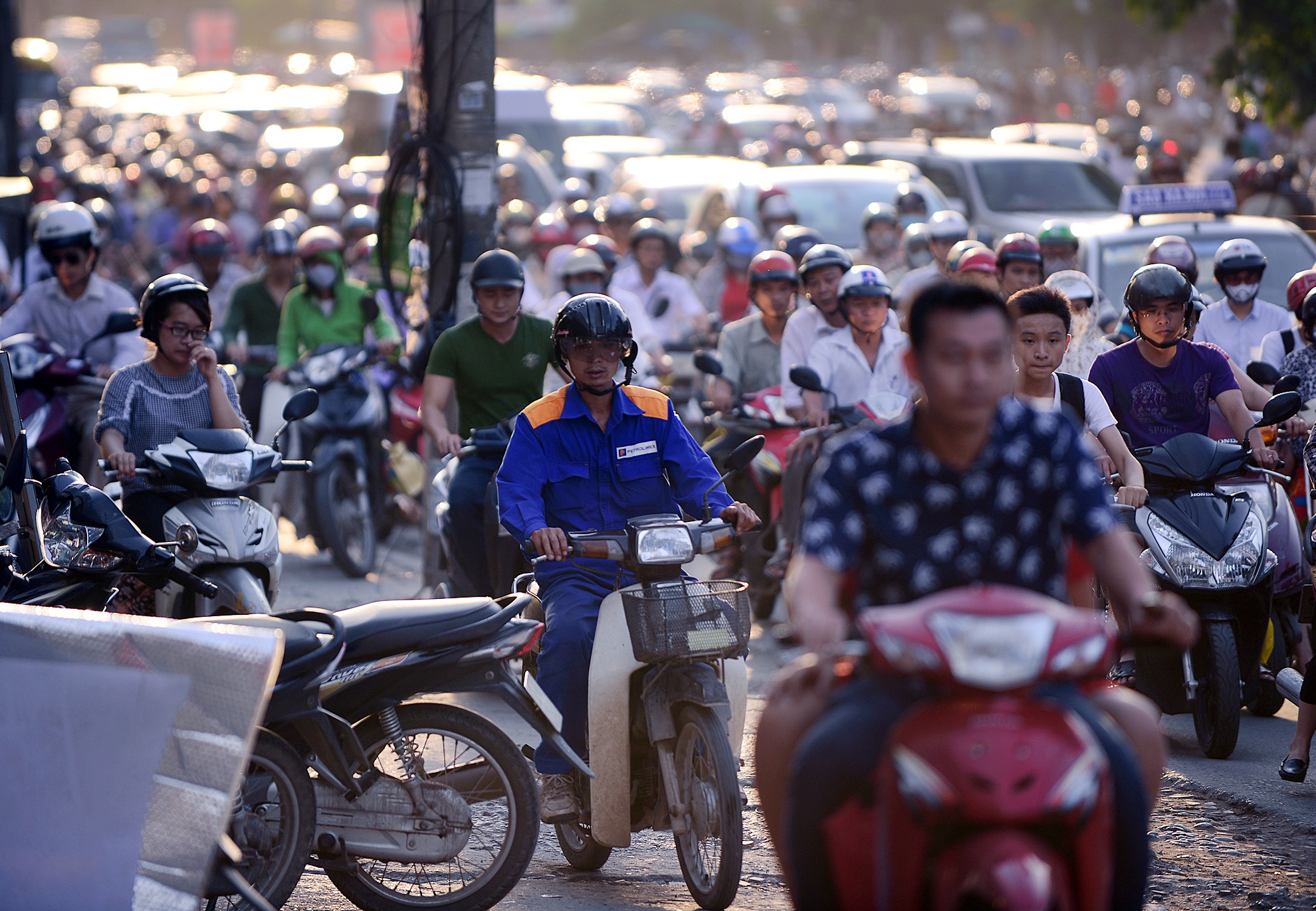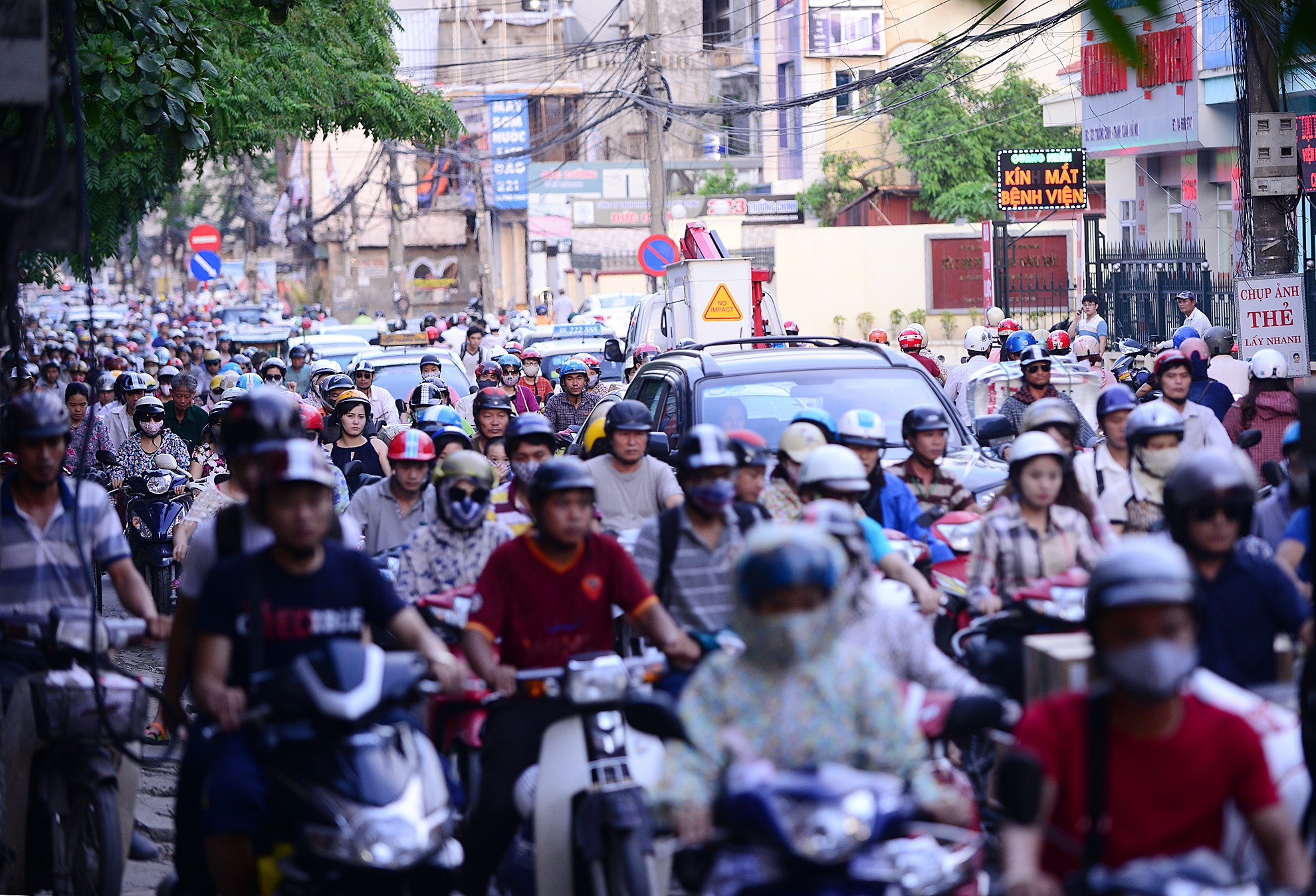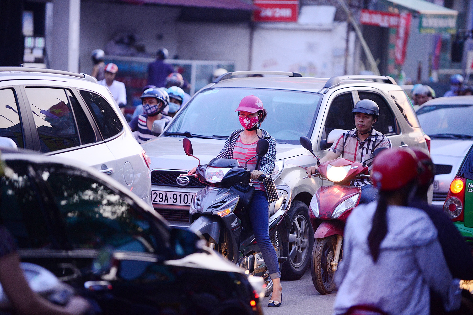 | Các phương tiện tiếp tục ùn ứ ngay đoạn đầu Ngã Tư Vọng. |