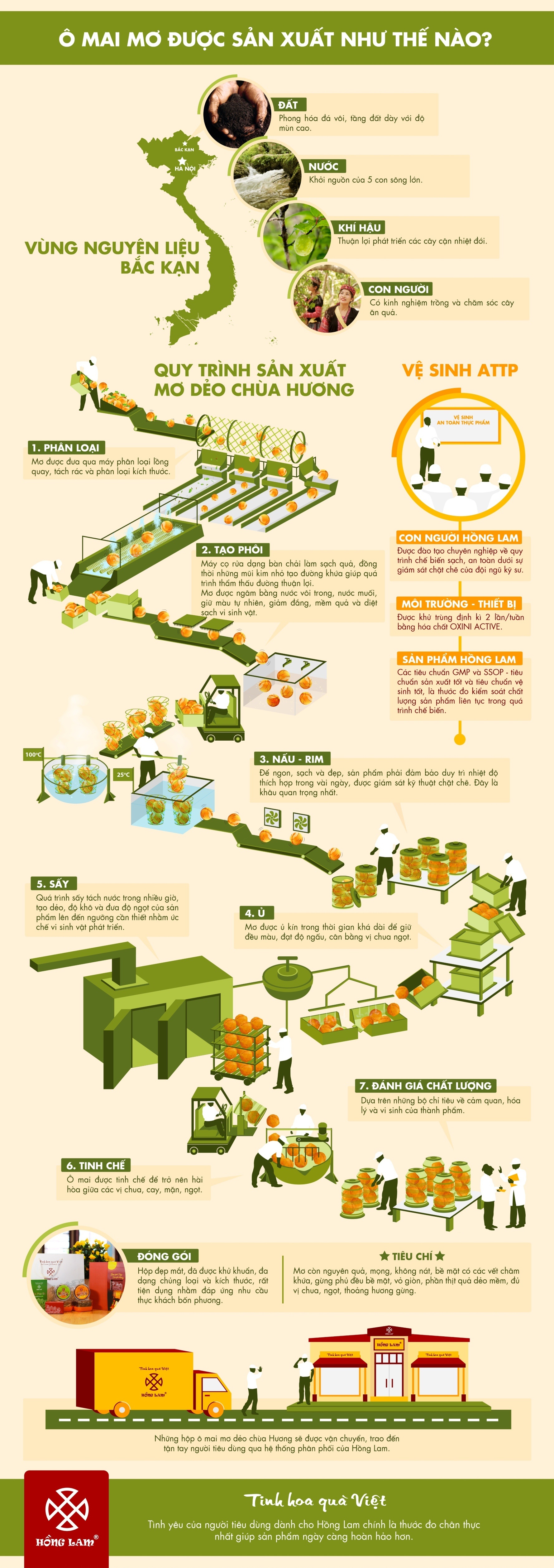 Với quy trình sản xuất khép kín, hợp vệ sinh, nguyên liệu tươi ngon, ô mai mơ chùa Hương là thương hiệu hàng đầu trong lòng người tiêu dùng sành ăn nhiều năm qua.