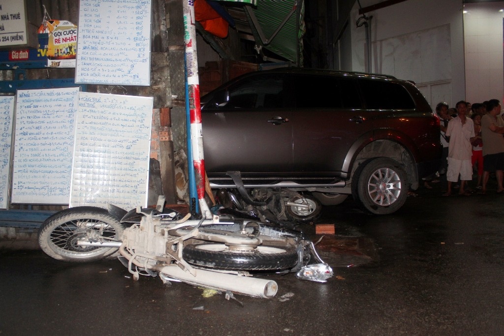 | Chiếc xe máy của nạn nhân hư hỏng nặng tại hiện trường. |