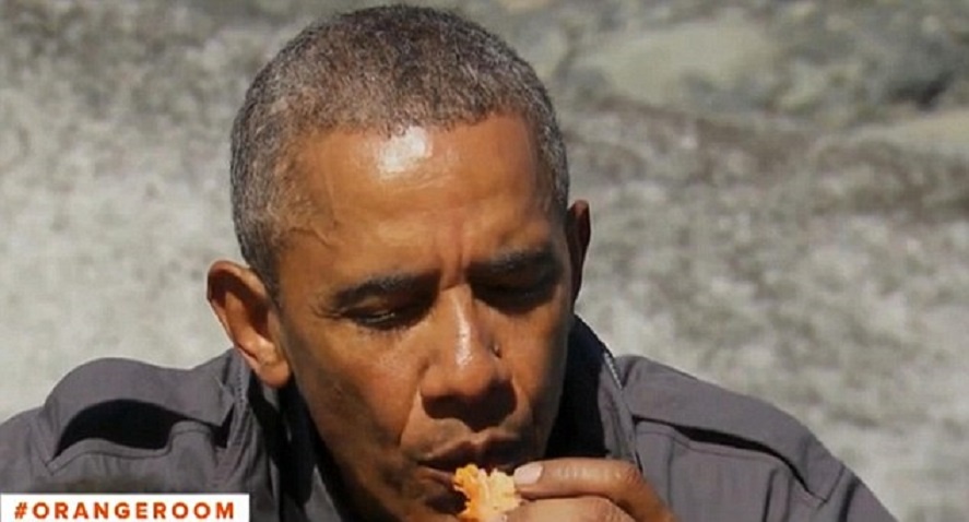 Ông chủ Nhà Trắng vẫn băn khoăn: "Như vậy, một con gấu đã nhai qua miếng cá này?''. Nhà thám hiểm đảm bảo với ông rằng, họ hoàn toàn có thể ăn cá thừa sau khi nấu chín chúng. Ảnh: Orangeroom