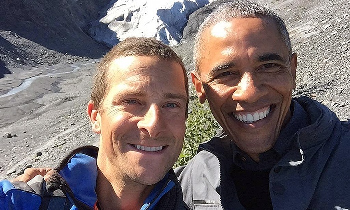 | Ông chủ Nhà Trắng tươi cười khi chụp ảnh cùng Bear Grylls (trái), chuyên gia sinh tồn nổi tiếng thế giới, trong chương trình Running Wild with Bear Grylls của kênh Discovery. Theo Guardian, ông Obama là tổng thống Mỹ đầu tiên chấp nhận thử thách sinh tồn ở nơi hoang dã. Người đàn ông quyền lực nhất thế giới tham gia thử thách để nâng cao nhận thức về biến đổi khí hậu. Ảnh: PA |
