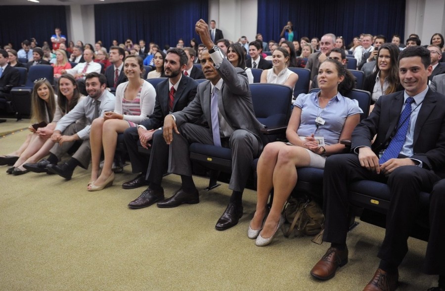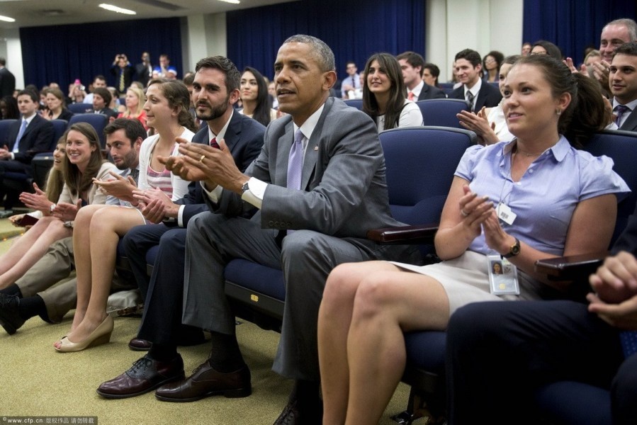 Tổng thống Obama và 200 nhân viên theo dõi trận đấu sinh tử giữa hai đội tuyển Mỹ và Bỉ tại một tòa nhà bên cạnh Nhà Trắng. Obama tin đội tuyển Mỹ sẽ giành chiến thắng. |