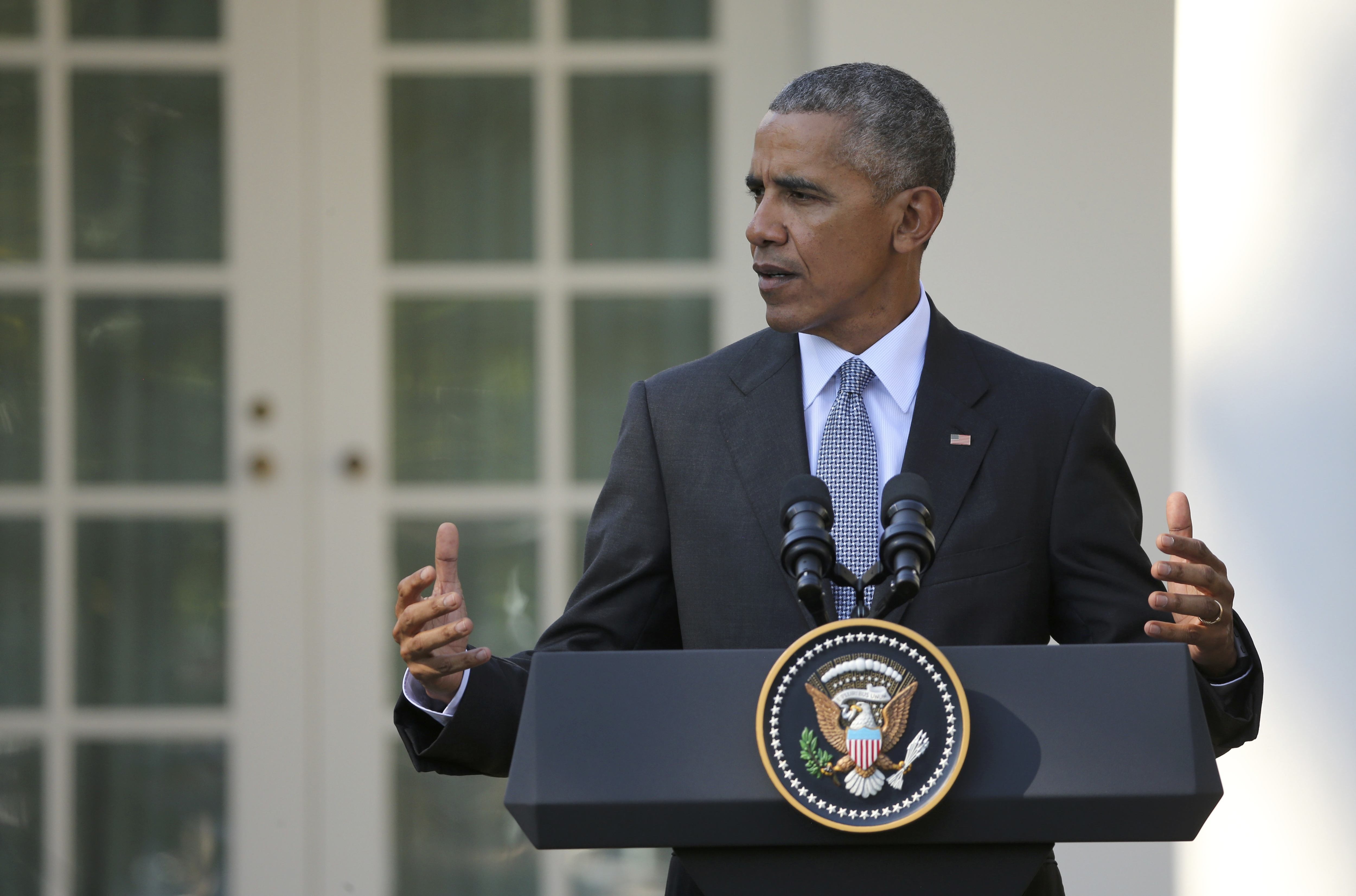 | Tổng thống Obama trong buổi họp báo tại Vườn Hồng hôm 18/10. Ảnh: Reuters |