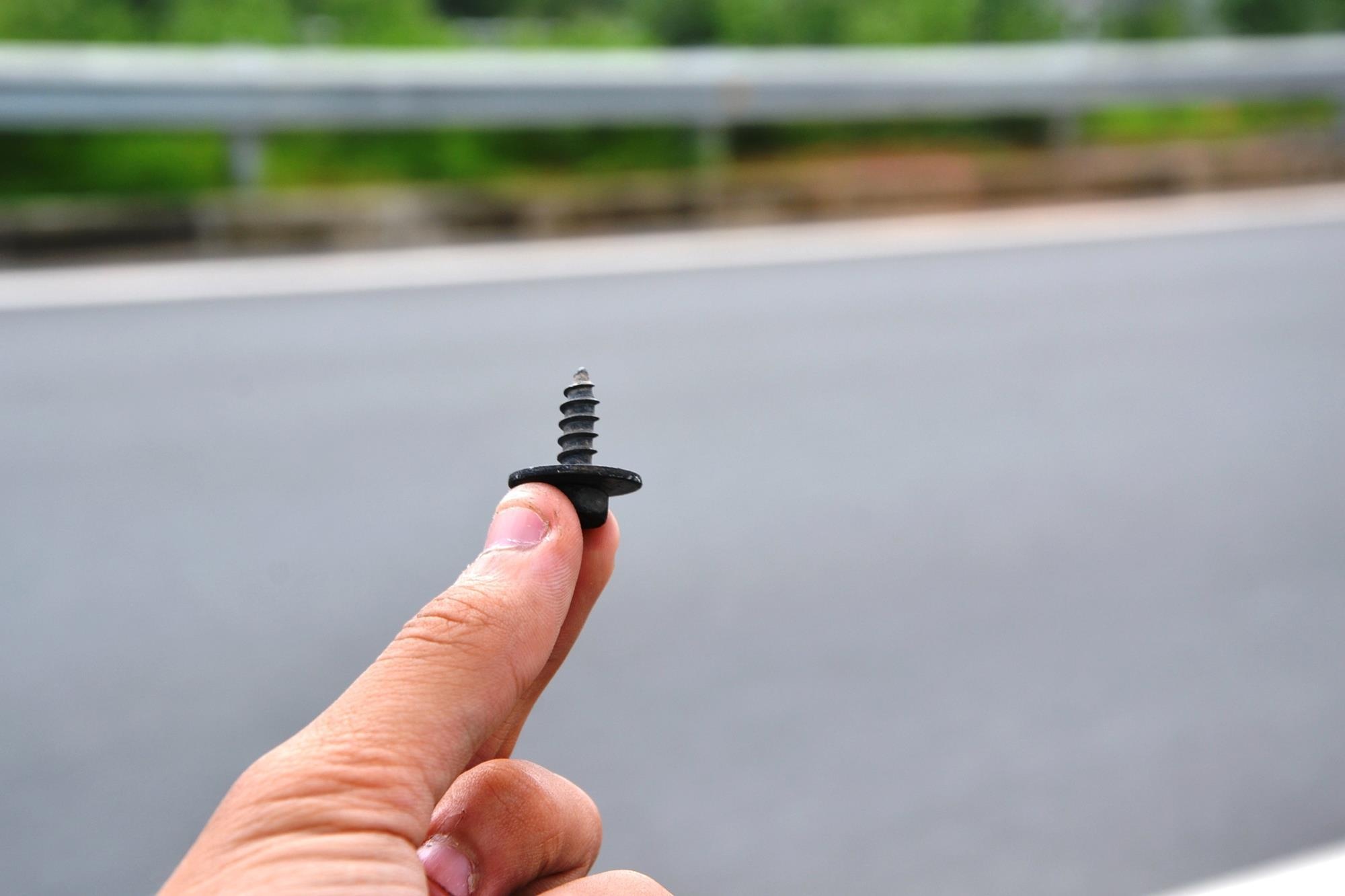 | Chiếc ốc vít nằm trên lòng đường ghi nhận tại km21-190 trưa 22/9. Ảnh: Hoàn Nguyễn. |