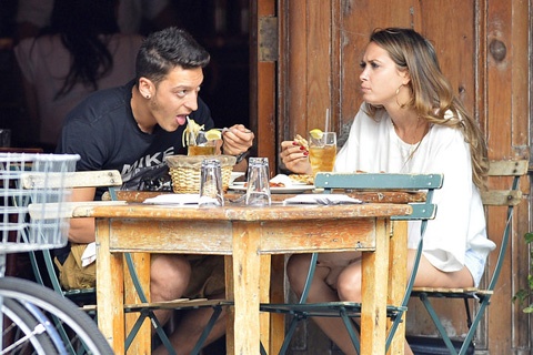 Trong khi các đồng đội tại Arsenal "nhấm nháy" nhau đi liên hoan mừng chiến thắng trước Liverpool đêm thứ bảy vừa qua, Mesut Oezil lại trở về nhà với cô bồ xinh đẹp Mandy Capristo, đi dùng bữa tối và lên bar thưởng thức hương vị tình yêu.
