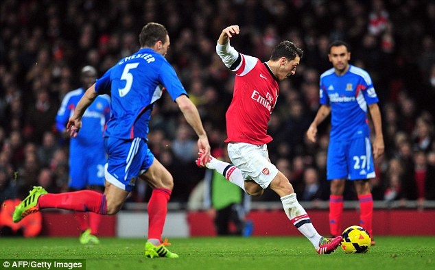 | Tuyển thủ Đức thi đấu xông xáo và là người ghi bàn nâng tỷ số lên 2-0 cho Arsenal ở đầu hiệp 2. |