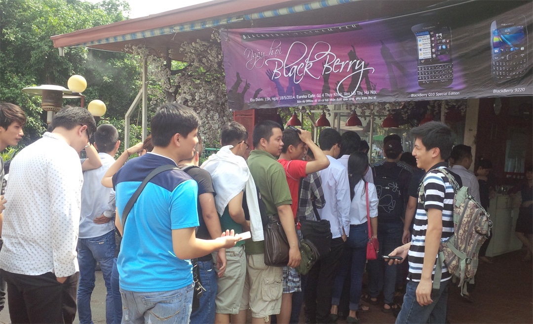 Buổi offline do cộng đồng BlackBerry Fan Việt Nam tổ chức tại Hà Nội chiều hôm 18/5. Chương trình này bắt đầu lúc 15h, nhưng ngay từ trưa, đã có nhiều thành viên đến đăng ký tham gia. BlackBerry là cộng đồng chơi lớn, phát triển mạnh tại Việt Nam từ những năm 2006. Trong vài năm trở lại đây, số lượng các buổi gặp mặt ít hơn, tuy nhiên, người dùng sản phẩm này vẫn còn đông, đặc biệt giới học sinh, sinh viên.