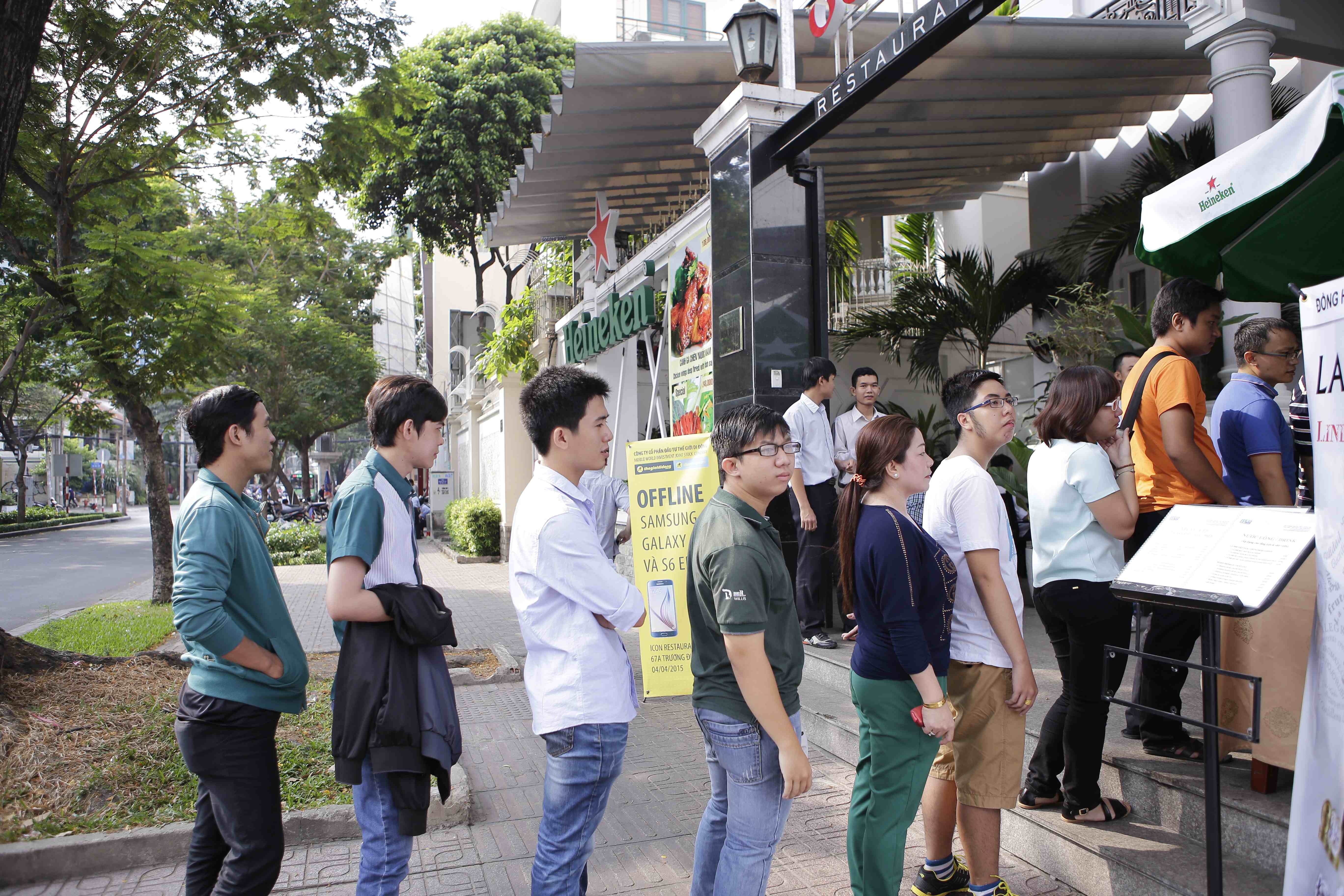 | Nhà bán lẻ Mai Nguyên cũng phối hợp với Samsung tổ chức buổi Offline tại TP HCM. Đại diện nhà bán lẻ này cho biết lượng đặt hàng mẫu S6 Edge hiện cao hơn nhiều so với Galaxy S6. |