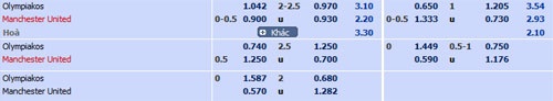 Tỷ lệ trận Olympiakos - M.U