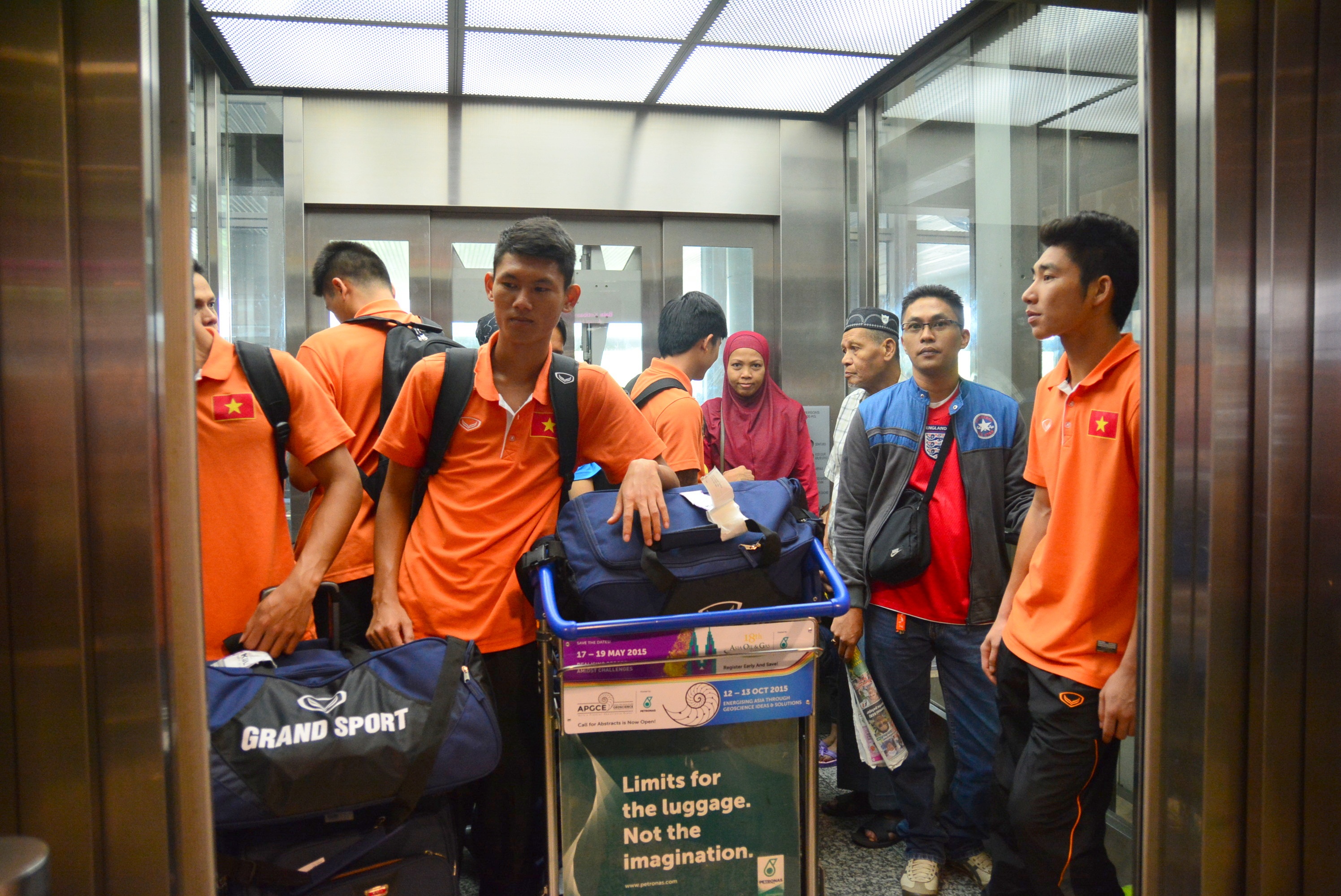 | Các cầu thủ được phía Liên đoàn bóng đá Malaysia cho người đến đón về khách sạn Blue Wave, cách sân bay 50 km. Chiều nay, đội sẽ có buổi tập đầu tiên vào lúc 18h (giờ địa phương). |