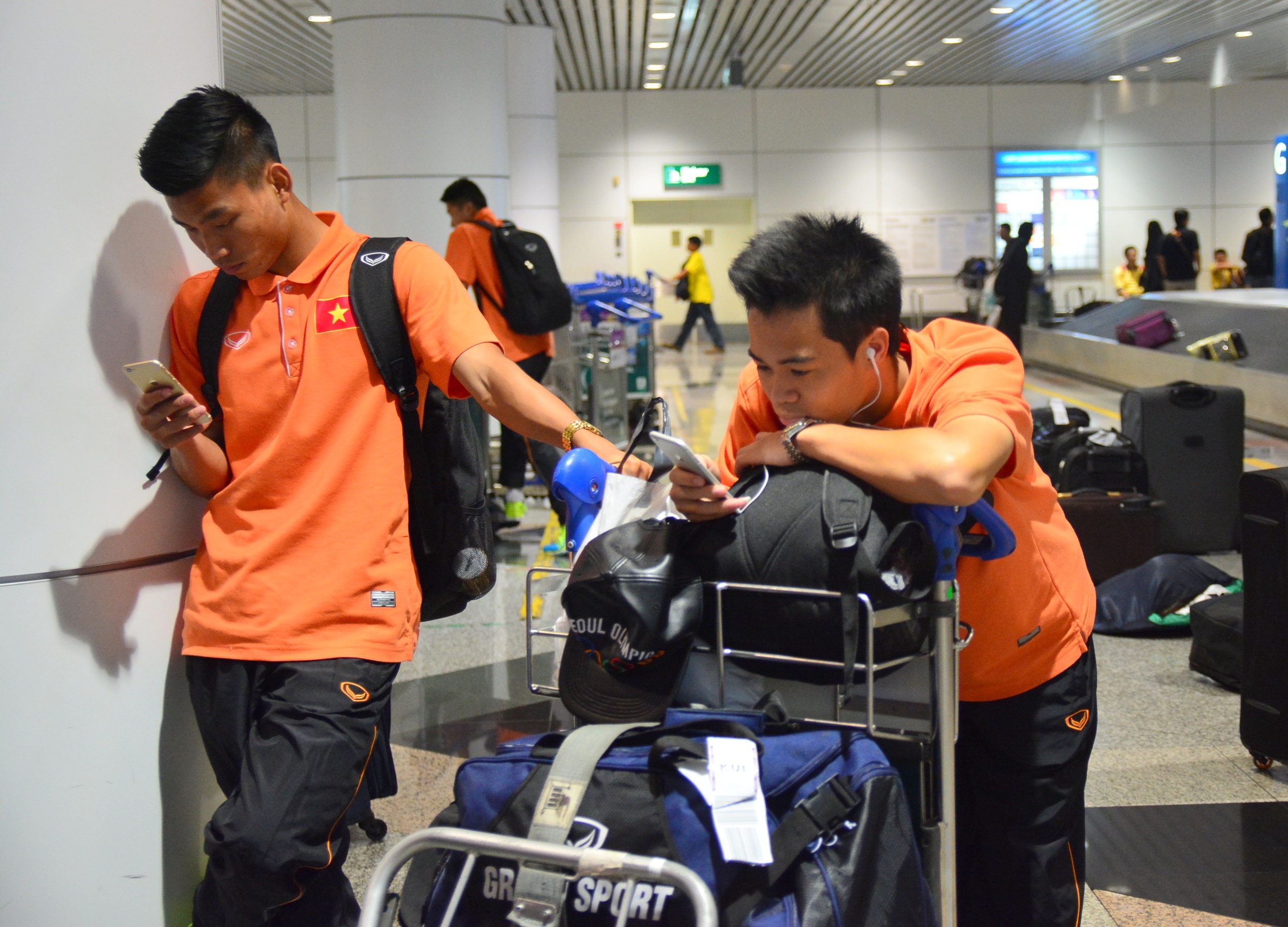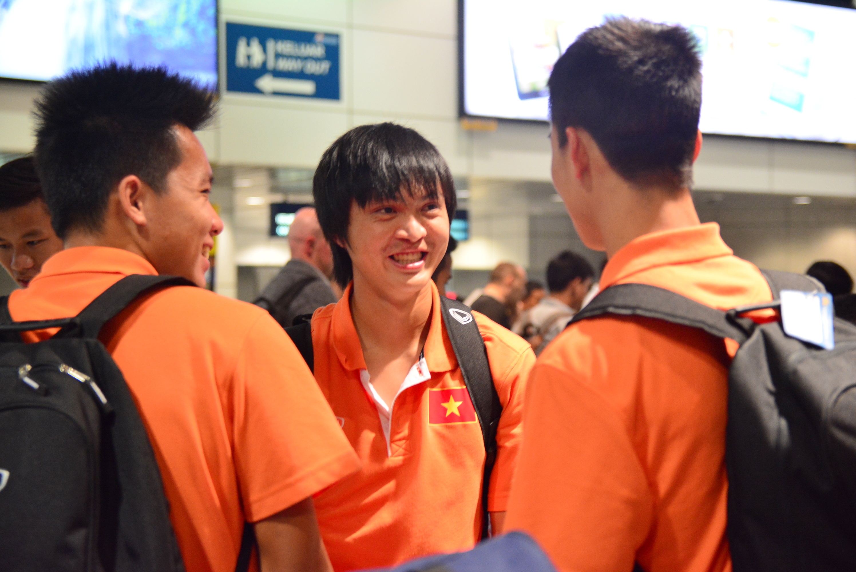 Bỏ lại trận thua Olympic Thái Lan, Công Phượng cùng các đồng đội khá vui vẻ khi đặt chân đến Malaysia vào trưa 23/3 để chuẩn bị cho vòng loại U23 châu Á 2016.