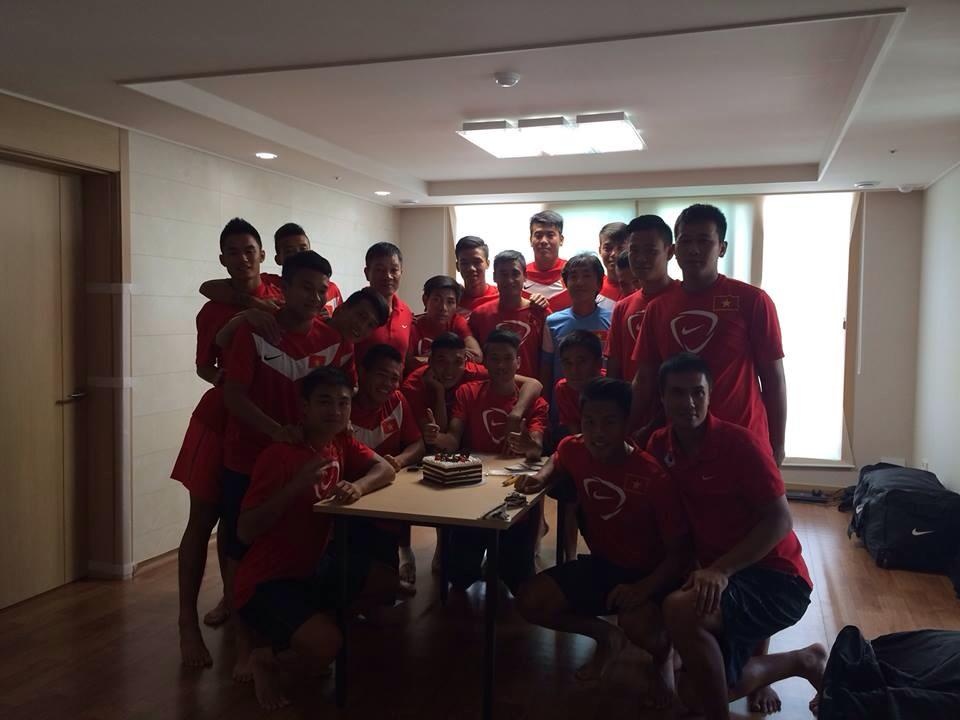 Buổi tối qua, sau khi cùng Đoàn TTVN dự lễ khai mạc Asian Games, các đồng đội đã cùng nhau đi tìm mua bánh gato để chúc mừng sinh nhật đồng đội Vũ Minh Tuấn. Buổi tiệc nhỏ diễn ra ngay tại tầng 16 của tòa nhà dành cho VĐV Việt Nam nằm trong Làng vận động viên Asian Games tại Incheon, Hàn Quốc. Sinh nhật nơi đất khách chỉ đơn giản nhưng ấm cúng trong lời bài Happy Birthday từ các đồng đội khiến tiền vệ người Quảng Ninh rất xúc động.