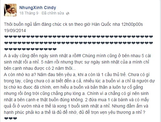Vũ Minh Tuấn chia sẻ: "Cảm ơn tất cả mọi người đã gửi đến mình lời chúc mừng sinh nhật. Cảm ơn HLV và các anh em trong đội... We are family! Chúc tất cả mọi người luôn vui vẻ và hạnh phúc".