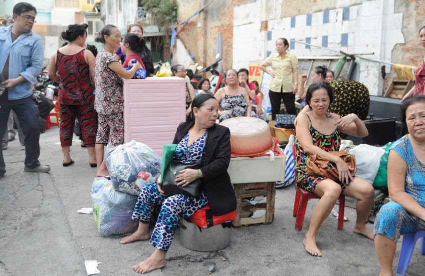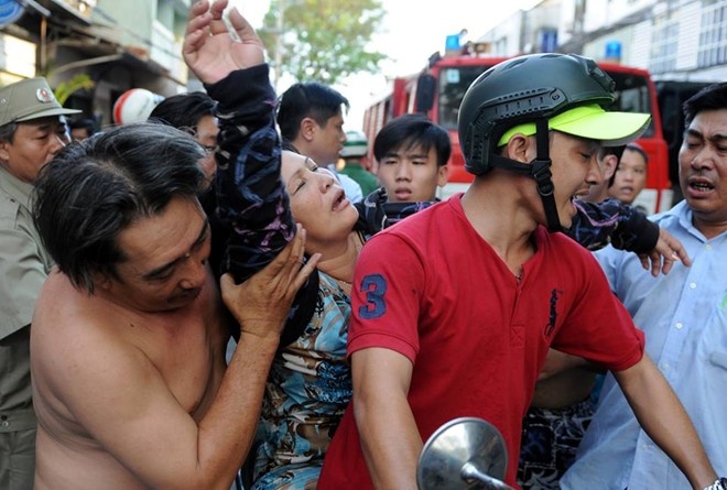 15h30, khu dân cư Yersin ở quận 1 (TP HCM) cháy lớn khiến hàng trăm người dân hoảng loạn tháo chạy. Nhiều người đứng giữa đường quỳ lạy vì tài sản không di dời kịp.