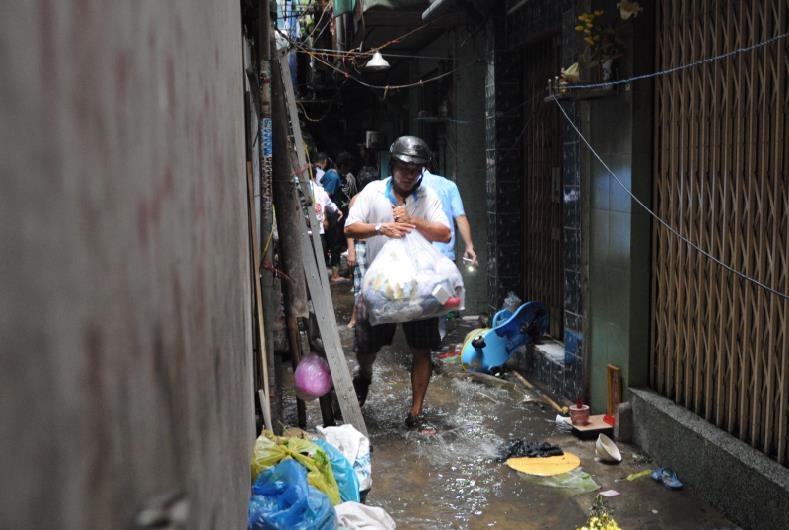 Gói gém các vật dụng bỏ vào bao nylon. "Được chút nào hay chút đó, chứ không thì cháy hết lấy gì mà dùng", ông Nguyễn Minh Hoa cho biết.