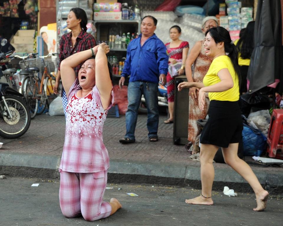 Nhiều người không kịp di dời tài sản nên hoảng loạn, quỳ lạy trời khóc than.