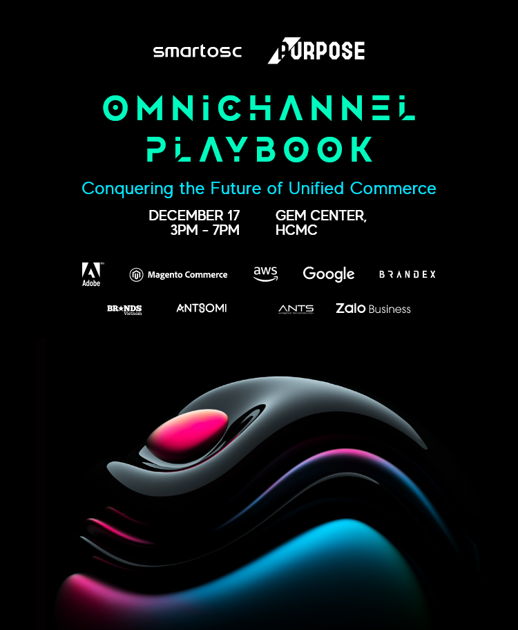 Sự kiện “Omnichannel Playbook: Conquering the Future of Unified Commerce” được diễn ra lúc 15h-19h thứ năm, 17/12 tại GEM Center, TP.HCM. Độc giả đăng ký tham dự tại đây. Chương trình do SmartOSC và The Purpose Group phối hợp tổ chức, dành cho đại diện các nhãn hàng và nhà bán lẻ tại Việt Nam.