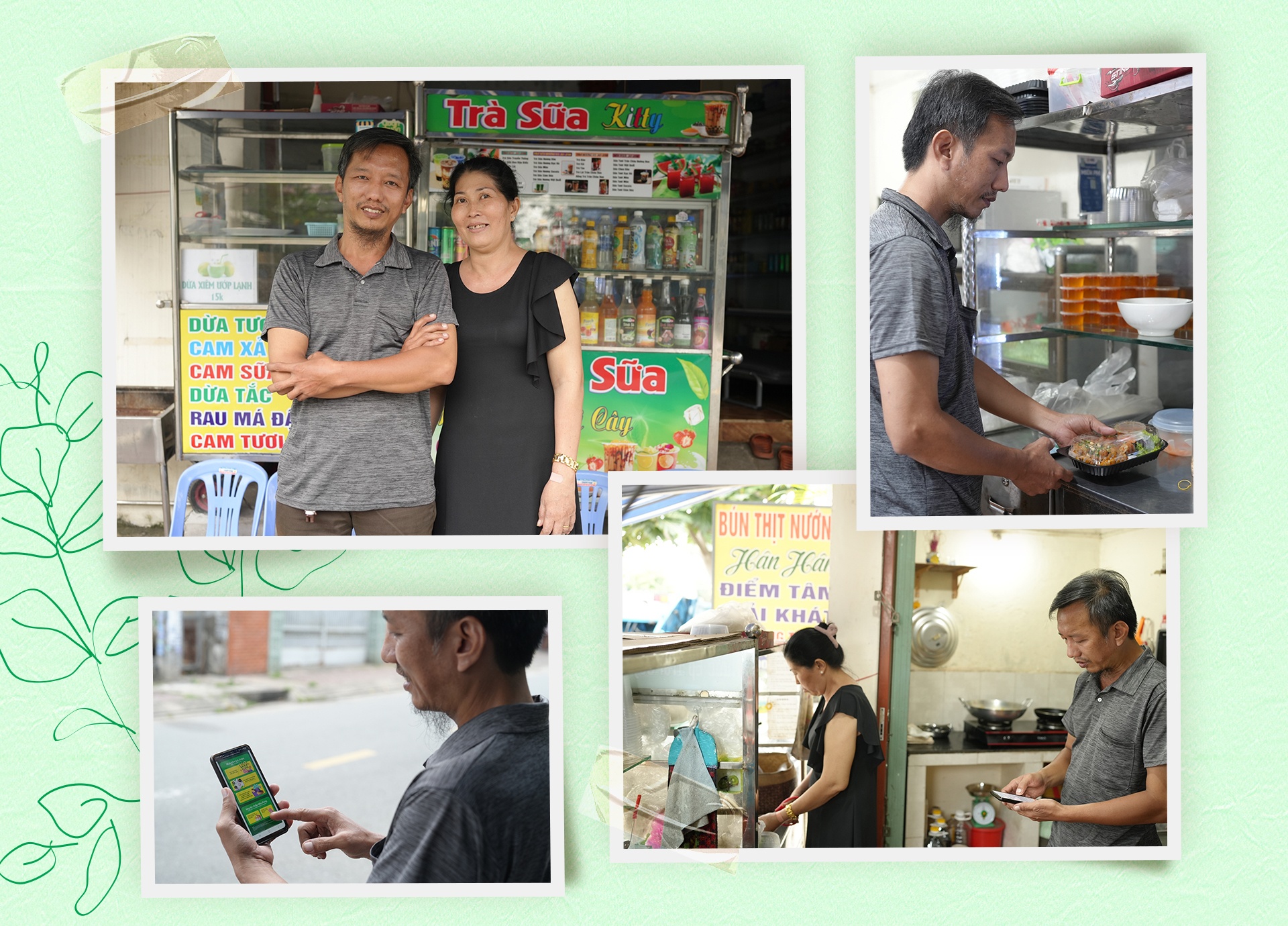 Đó chính là câu chuyện của vợ chồng anh Dương Đức Thọ (42 tuổi, TP.HCM - chủ quán bún thịt nướng Hân Hân tại quận 9, TP.HCM). Nhờ chương trình vay tín chấp cùng ngân hàng VietinBank dành cho đối tác tài xế và nhà hàng của Grab, anh chị đã quyết định bán thêm mặt hàng cơm văn phòng để mở rộng kinh doanh.