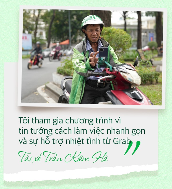 “Tôi tham gia chương trình vì tin tưởng cách làm việc nhanh gọn và sự hỗ trợ nhiệt tình từ Grab”, cũng như anh Quang, anh Hà hài lòng khi được tư vấn đầy đủ về khoản vay và biết số tiền cần trả được tính theo ngày. “Nhờ đó, tôi an tâm và không cảm thấy áp lực, có tinh thần làm việc hơn", anh Hà kể.