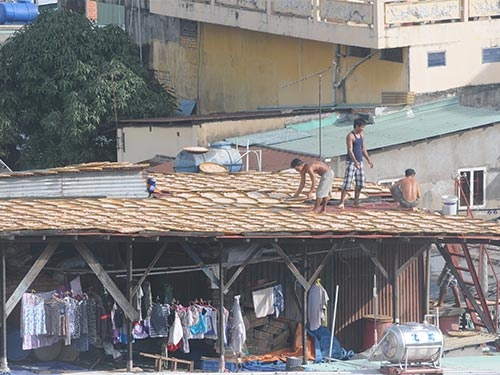 | Nhiều loại mứt được phơi trên mái nhà ở khu cư xá Đường Sắt (phường 1, quận 3) sau khi qua công đoạn sơ chế bằng hóa chất. |