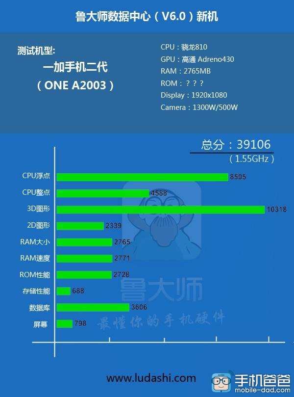 Một thiết bị di động của thương hiệu OnePlus lộ diện phần cứng trên trang Ludashi. Với ký hiệu A2003, thiết bị này được cho là OnePlus Two – smartphone nối tiếp chiếc OnePlus One ra mắt năm ngoái.