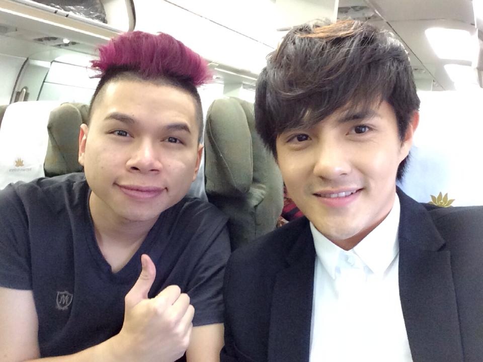 | Ông Cao Thắng và Hoàng Tôn chụp ảnh cùng nhau trên máy bay trước vụ tai nạn giao thông. |