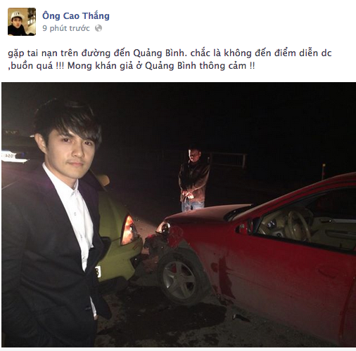 Ông Cao Thắng chia sẻ, sau khi được cảnh sát địa phương giải quyết vụ tai nạn, anh và Hoàng Tôn đã gấp rút lên đường ra Quảng Bình để không lỡ buổi biểu diễn.
