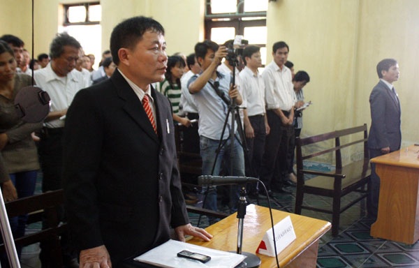 | Ông Luân (người đại diện cho ông Đoàn Văn Vươn) tại phiên tòa. Ảnh: Ngọc Anh. |