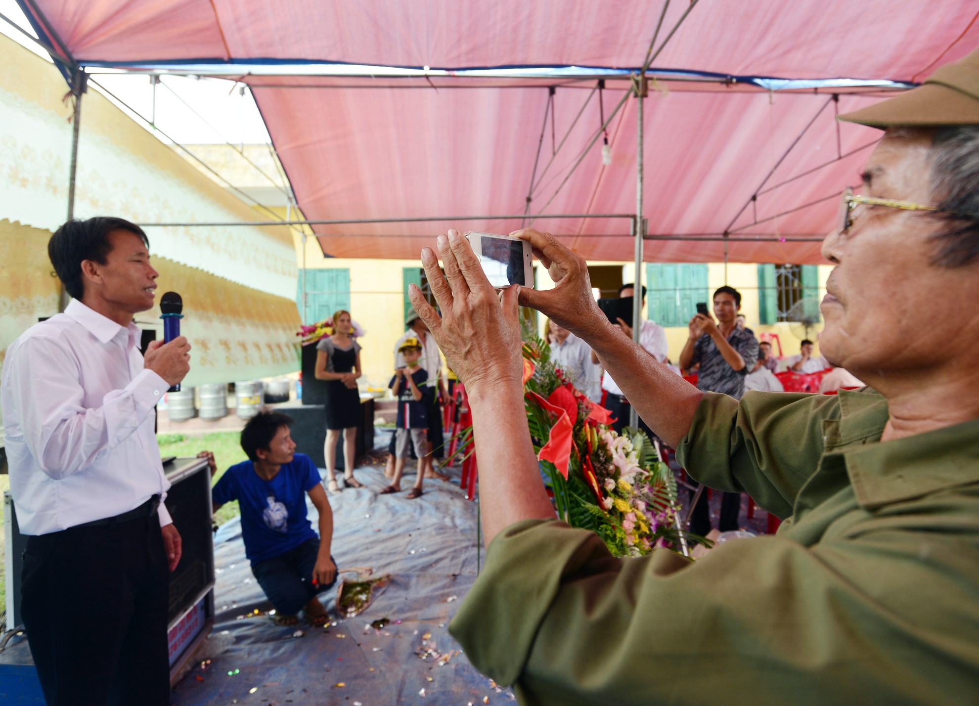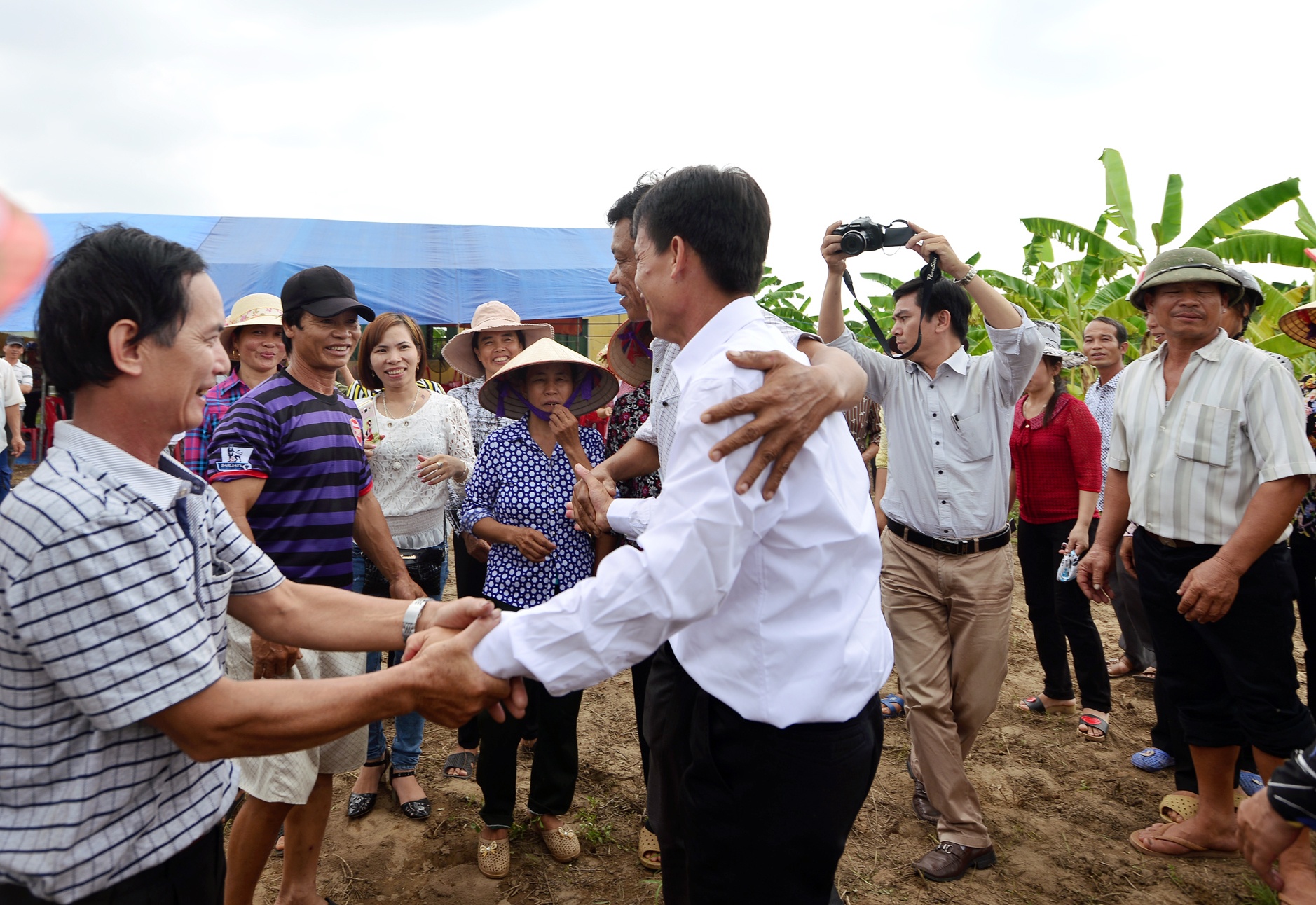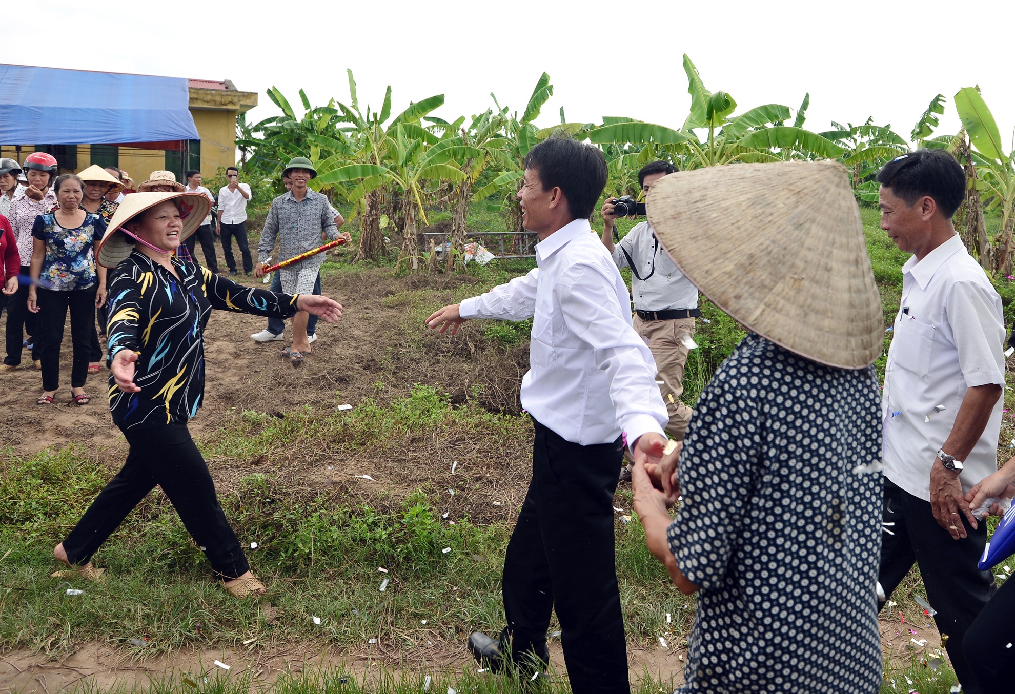 Làng xóm tại xã Vinh Quang ai nấy đều mừng rỡ khi thấy ông vẫn khỏe mạnh như xưa. Trước đó, họ đã bắc rạp tại mảnh vườn ngay chân đê chuẩn bị tiệc chiêu đãi.