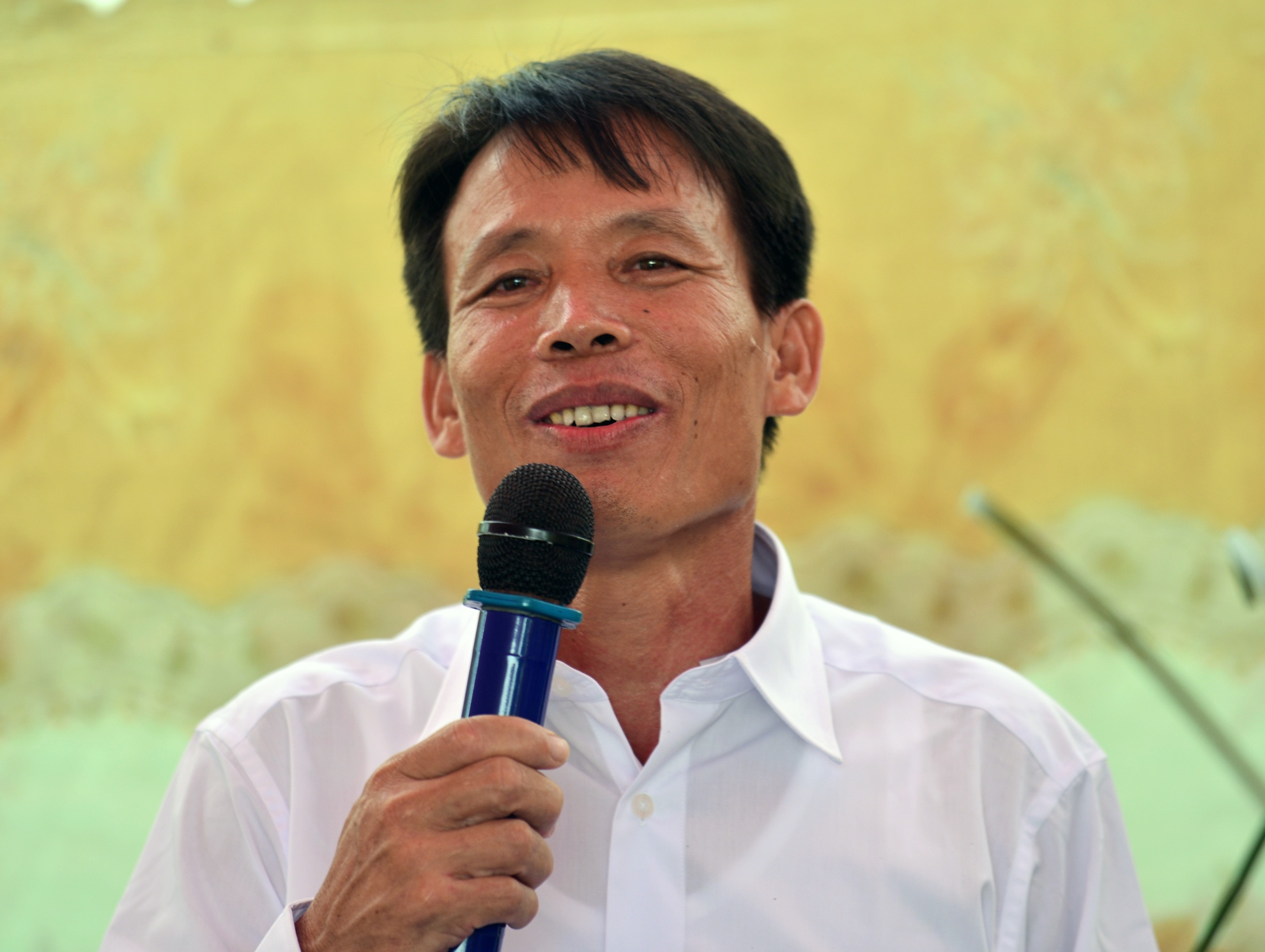 Phát biểu trong buổi lễ đón mình và người em ruột Đoàn Văn Quý, ông Vươn gửi lời cám ơn tới bà con làng xóm, bạn bè đã luôn ủng hộ và giúp đỡ vợ con ông khi đang phải thụ án.