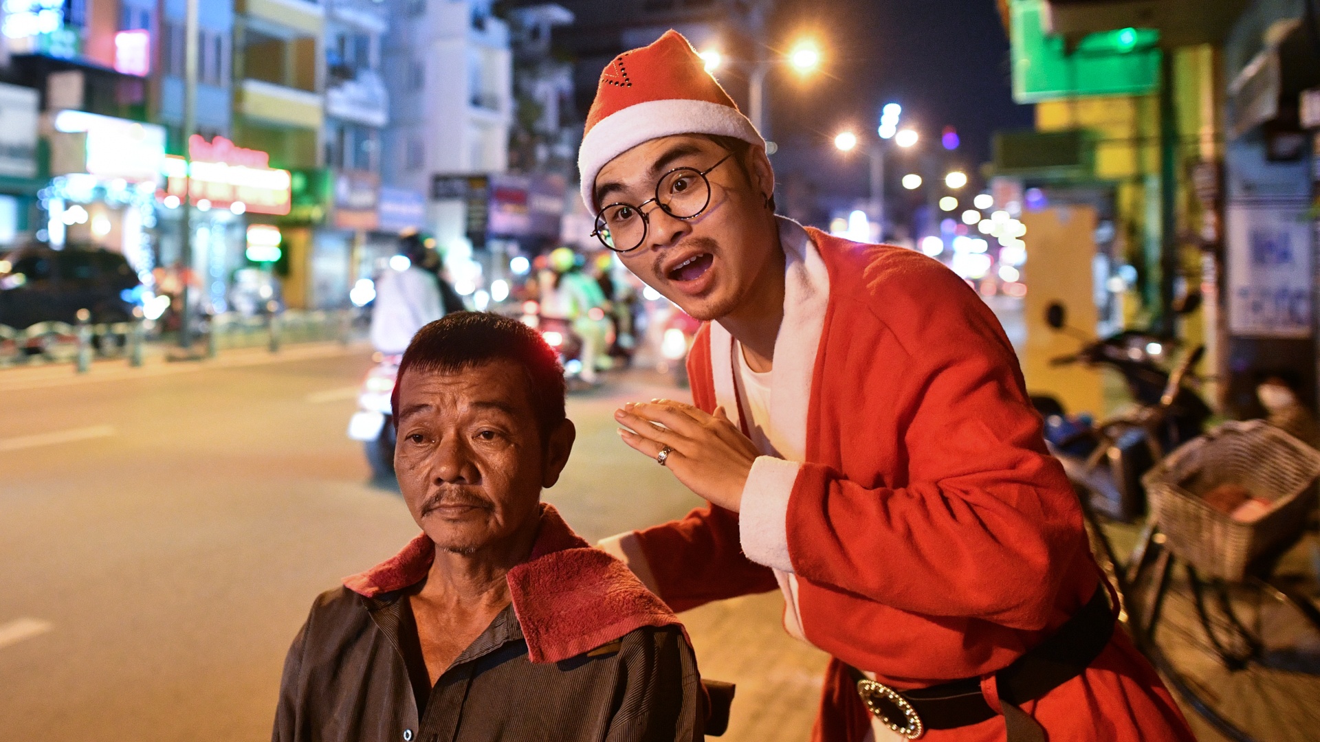Khi đi trên đường Hoàng Văn Thụ (quận Phú Nhuận), tôi thấy chú Dũng đang ăn vội suất cơm. Tôi đến ngỏ lời để cắt tóc cho chú. Nhanh chóng, chú đồng ý và đây là "khách hàng" đầu tiên của tôi trong đêm Giáng sinh. |