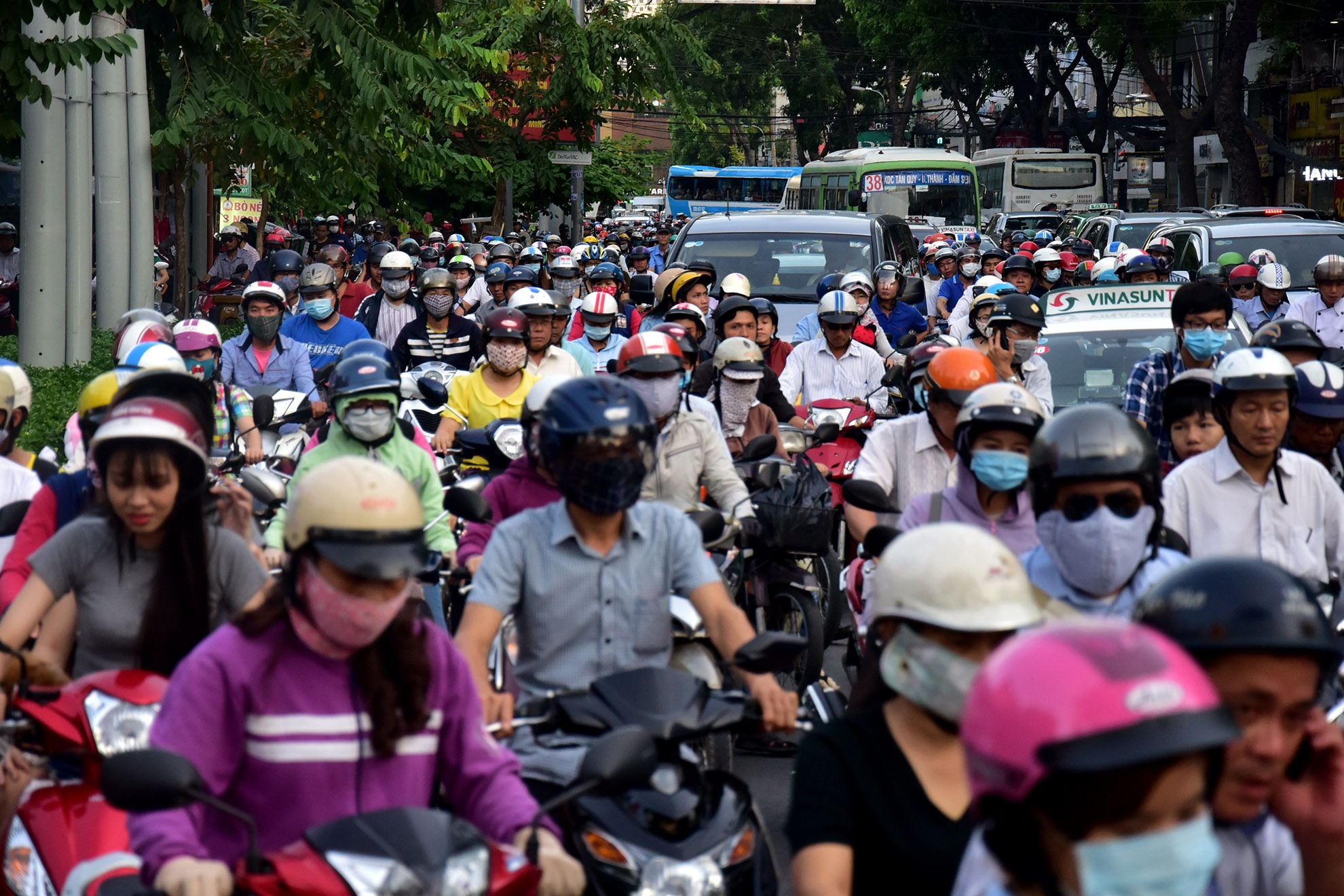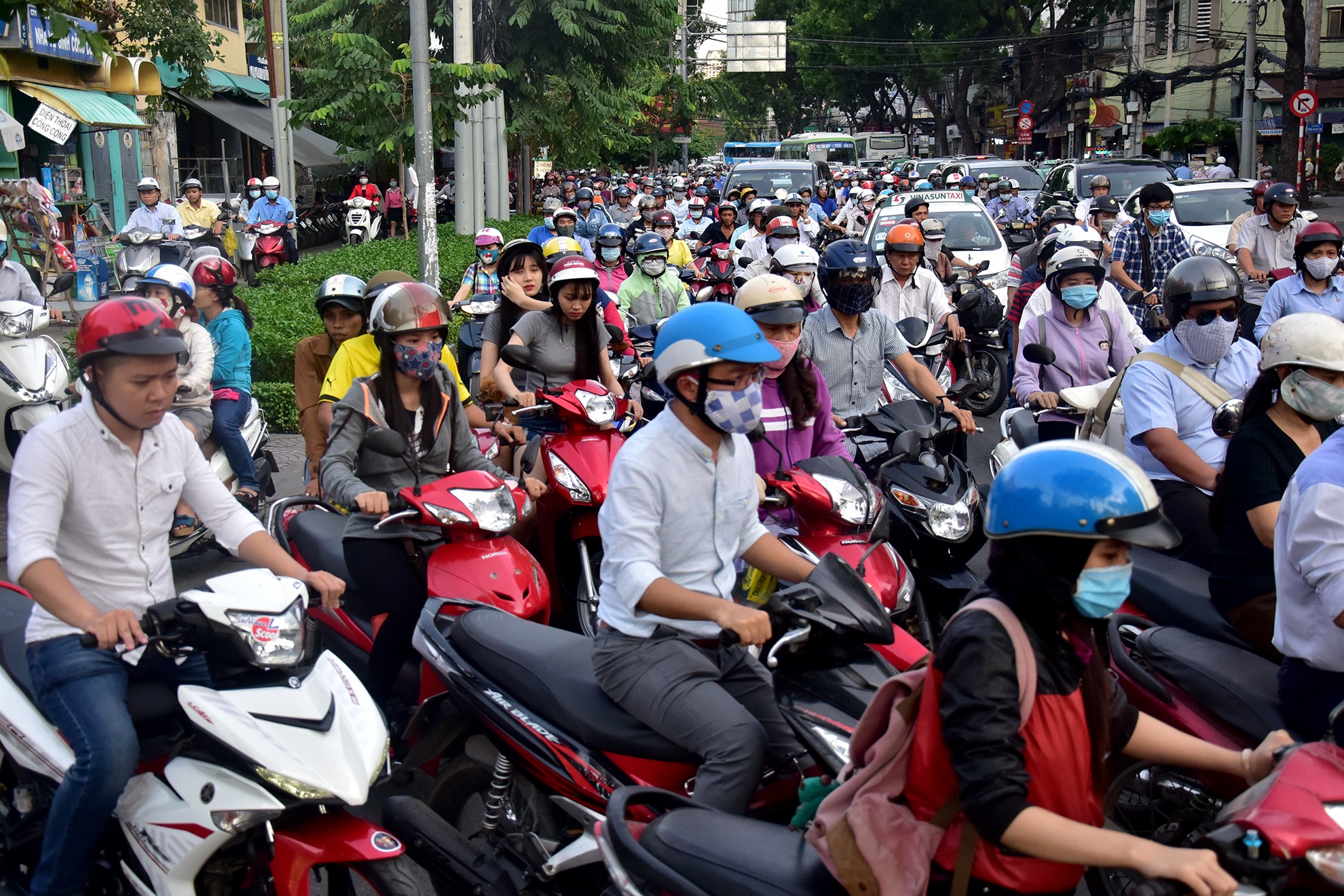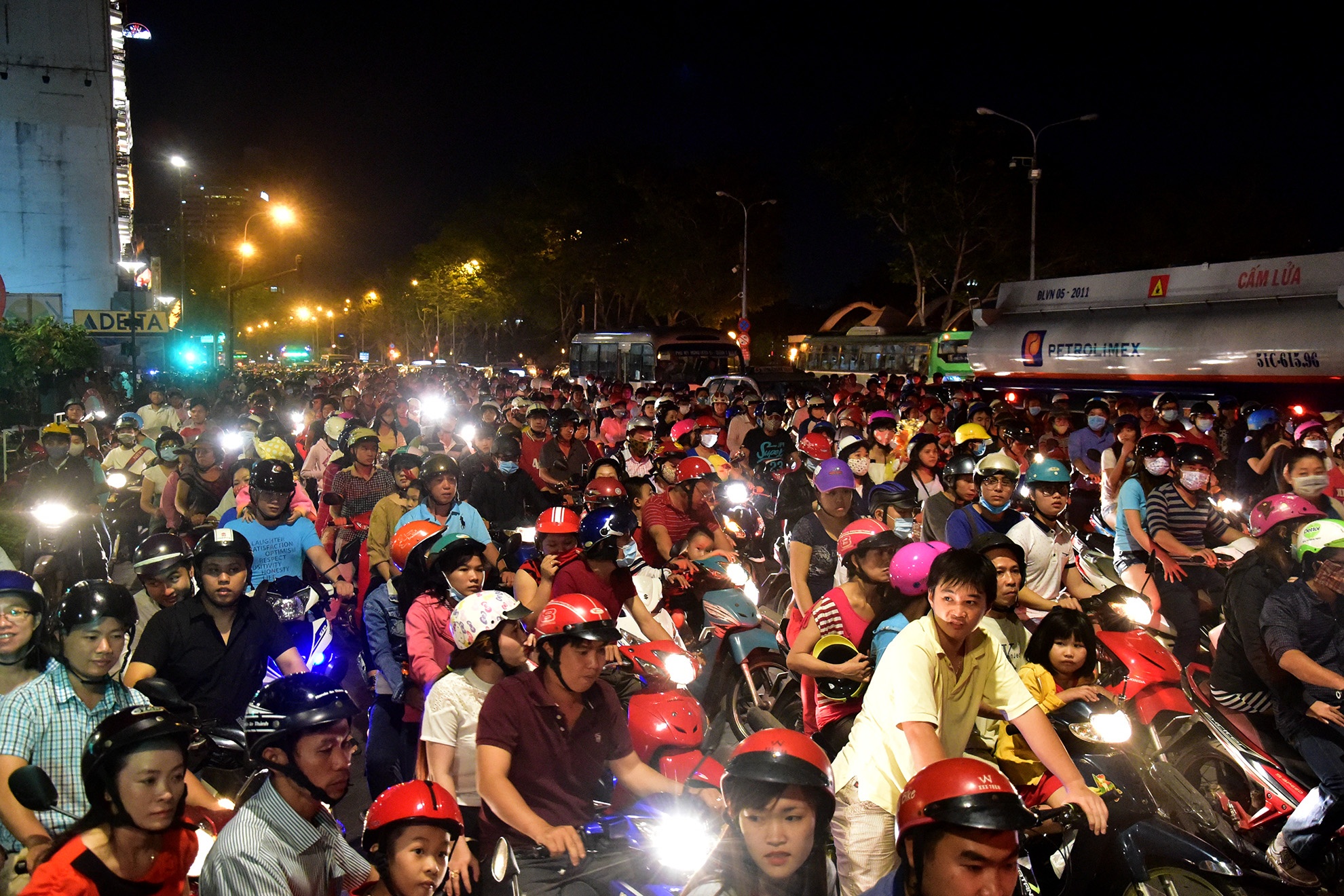 | 19h, các tuyến đường Tôn Đức Thắng, Nam Kỳ Khởi Nghĩa, Hai Bà Trưng... xe cộ ùn ùn nhích từng mét. |