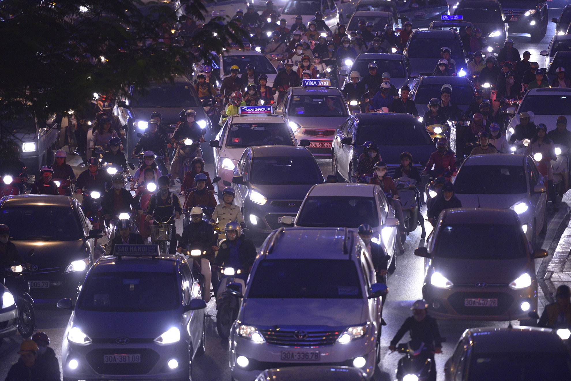 Phố Nguyễn Chí Thanh, điểm đầu của đường Trần Duy Hưng lúc 18h. |