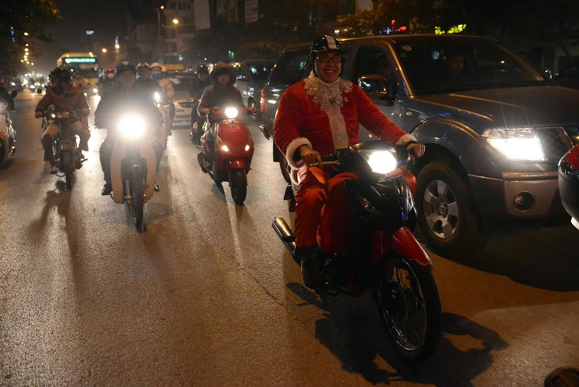 | Tắc đường đang là kẻ thù chính ngăn cản các ông già Noel hoàn thành sứ mạng tại Hà Nội. |