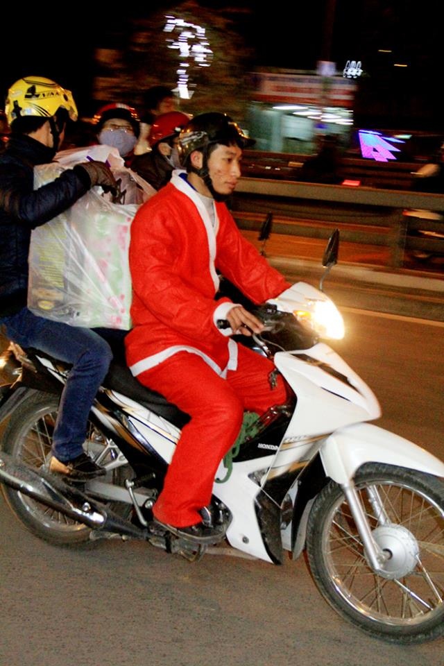 | Vào 9h45 tại Hà Nội, "Ông già Noel" vẫn bận bịu với công việc chuyển phát quà cho các em nhỏ. |