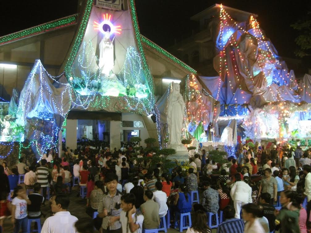 Lúc này, ở Sài Gòn, khi còn nhiều ông già Noel đang tất bật chạy ngoài đường, giáo dân đã bắt đầu ổn định chỗ ngồi để làm lễ. |