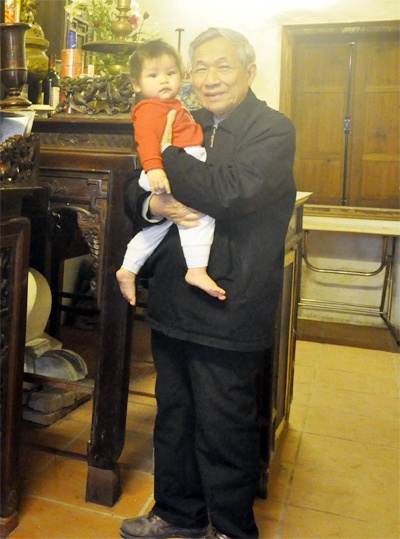 | Phút nghỉ ngơi của thầy bên con cháu. |