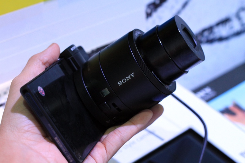 Tại triển lãm Sony Show 2013 đang diễn ra tại TP.HCM, hãng điện tử Nhật Bản đã mang đến mẫu QX10 và QX100. Đây là hai máy ảnh có hình dạng ống kính, có thể kết hợp với smartphone để chụp ảnh tốt hơn.