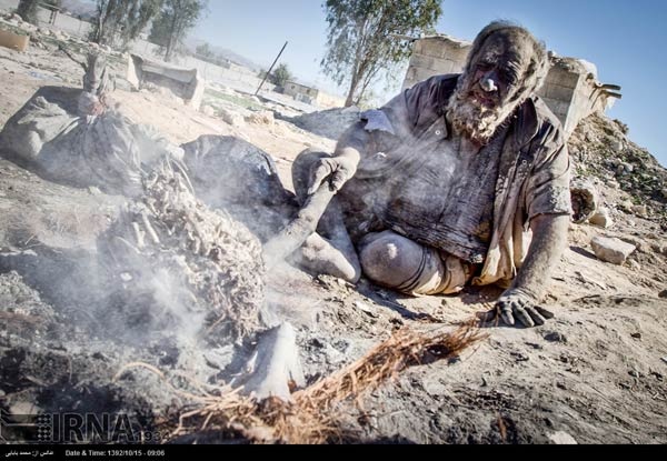| Đất bám trên người ông lão 80 tuổi cáu lên thành vẩy, đen nhẻm khiến ông giống như một bức tượng di động. Ngoài ra cơ thể ông lão còn bốc mùi rất hôi. |