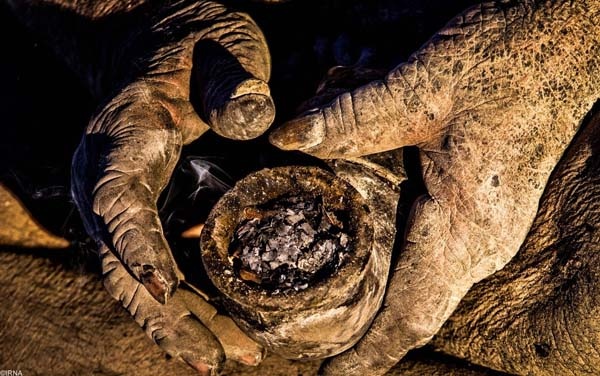 | Chiếc tẩu thuốc chứa đầy phân gia súc mà Hadji thường hút. |