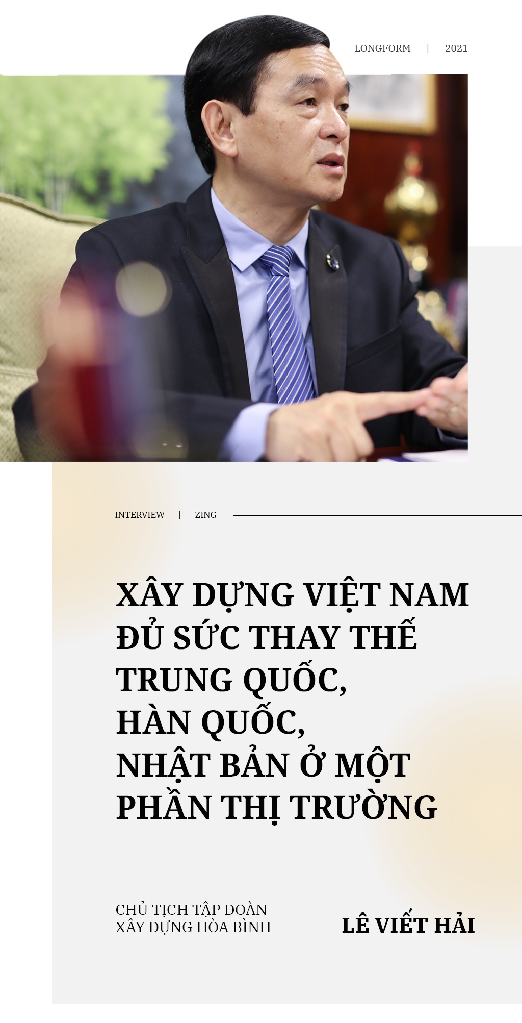Chúng tôi sẽ chưa xây nhà máy, cầu đường ở nước ngoài khi chưa có lợi thế. Bệnh viện, cao ốc văn phòng, trung tâm thương mại chúng tôi cũng làm nhiều rồi nhưng chưa có lợi thế thì chưa vội mang ra nước ngoài. Nói vậy không phải là Hòa Bình sẽ không phát triển những loại công trình khác.